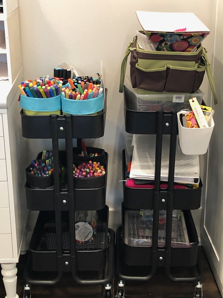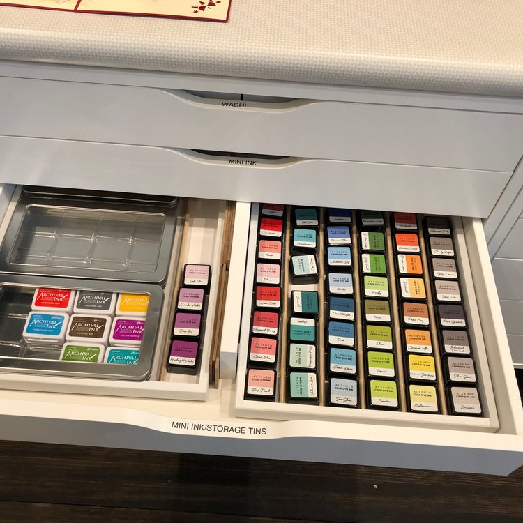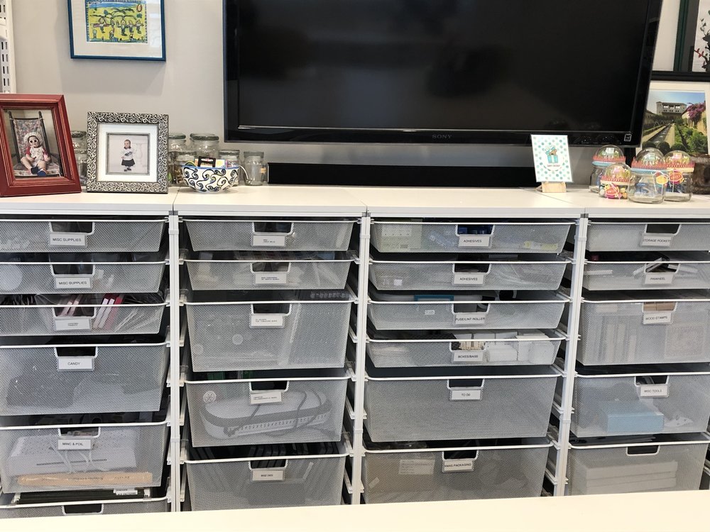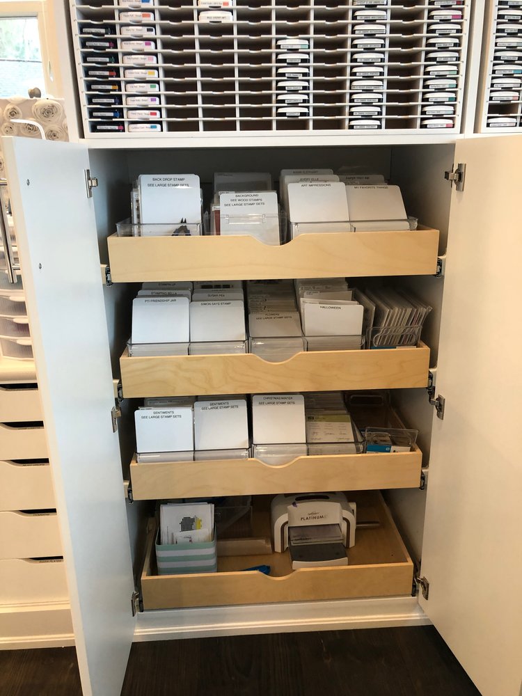 In our last home, I had sewing and knitting on one side and paper crafting on the other. If you have done any card making or paper crafting at all, you know there are a lot of bits and pieces that need to be organized. So, my hunt for ‘craft room organization’ began. I am a Virgo and organization is my complete jam! I had an island made – the biggest island I could have made to fit my space. It was (and still is) amazing.