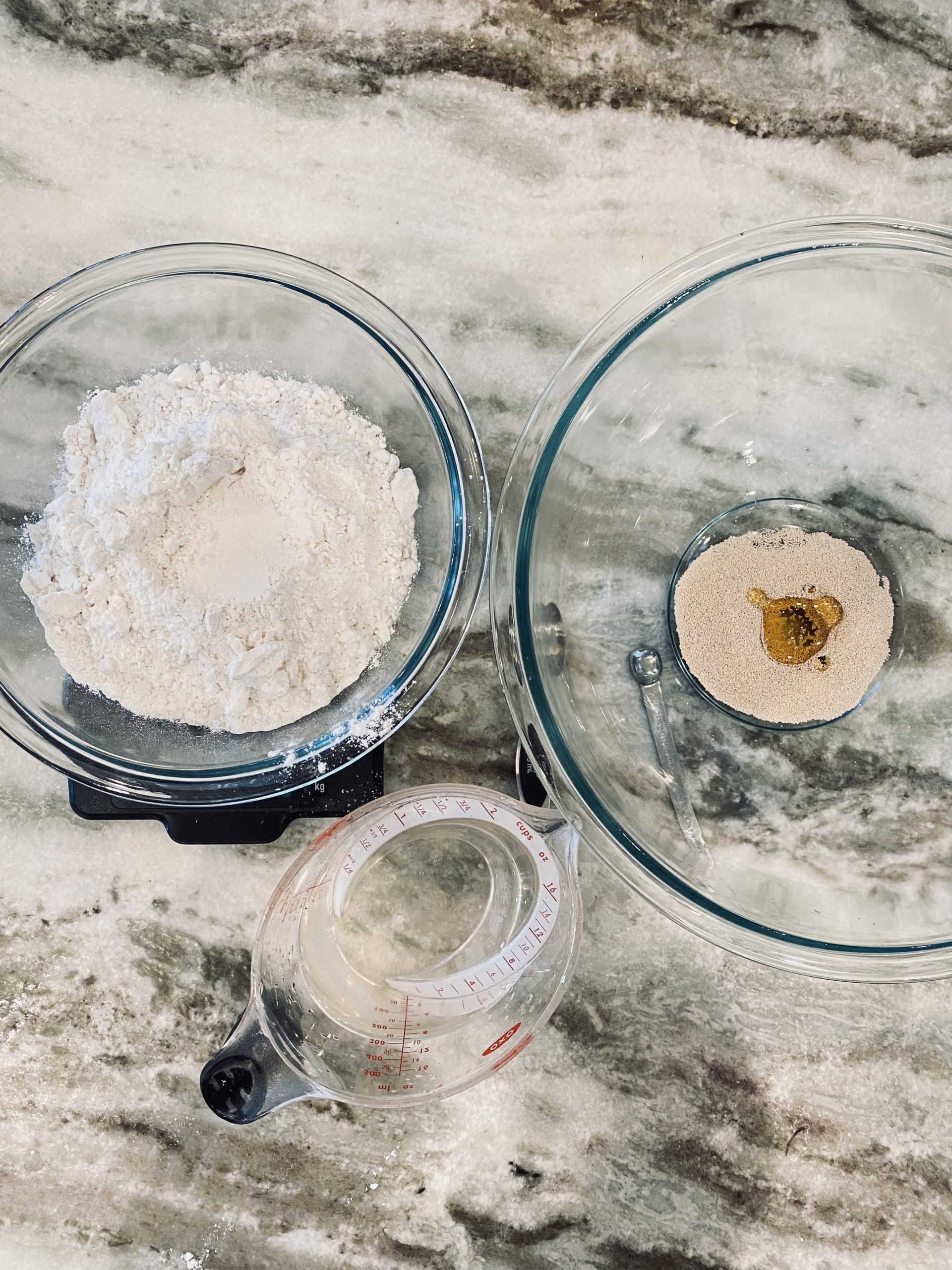 360gramsAll purpose flour (or 3 cups) + extra for dusting