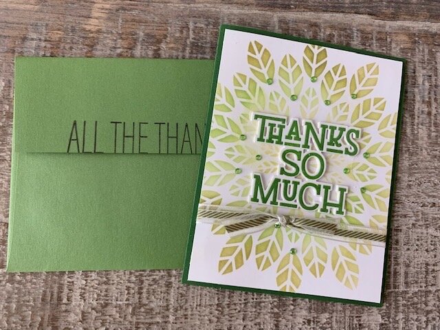 Lawn Fawn Noble Fir cardstock Simon Says Stamp All the Thanks stamp for the envelope