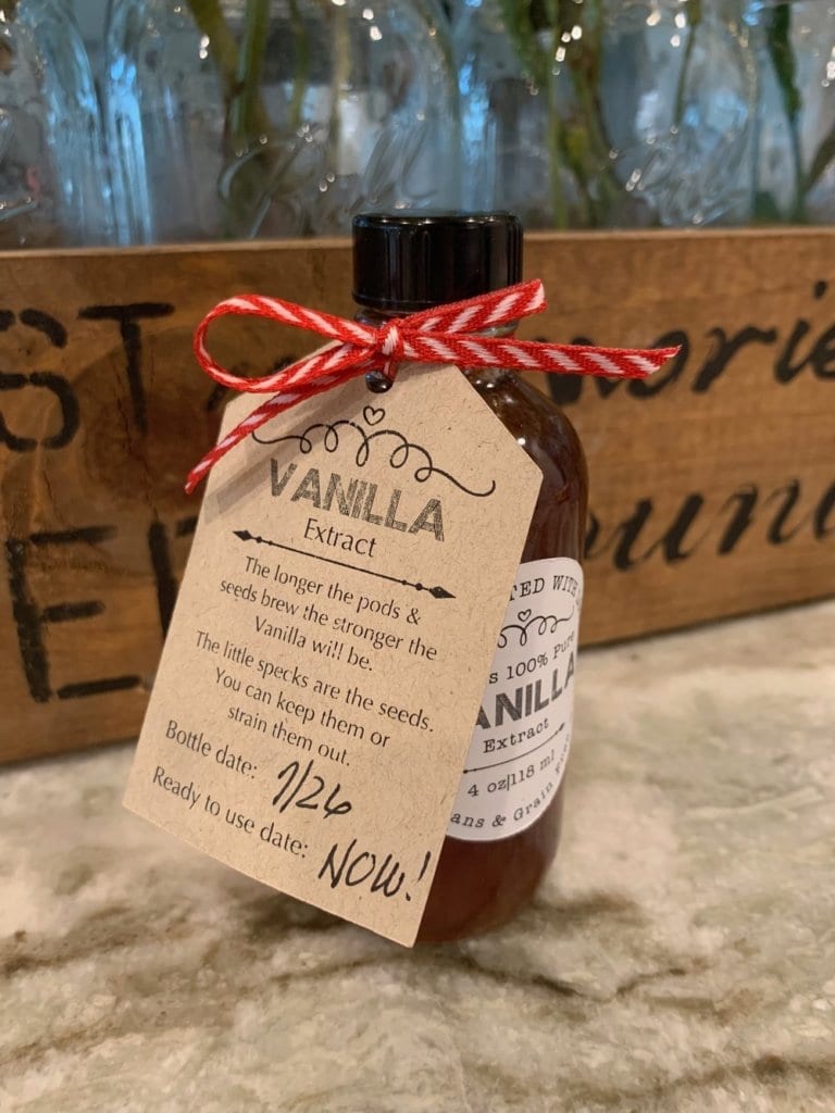 It takes about 2-3 months for the beans and alcohol to become vanilla extract. If you are reading this and you only have a few weeks (or days) don’t despair – I have a few tricks at the end of this post so you can still make it and give as a gift.